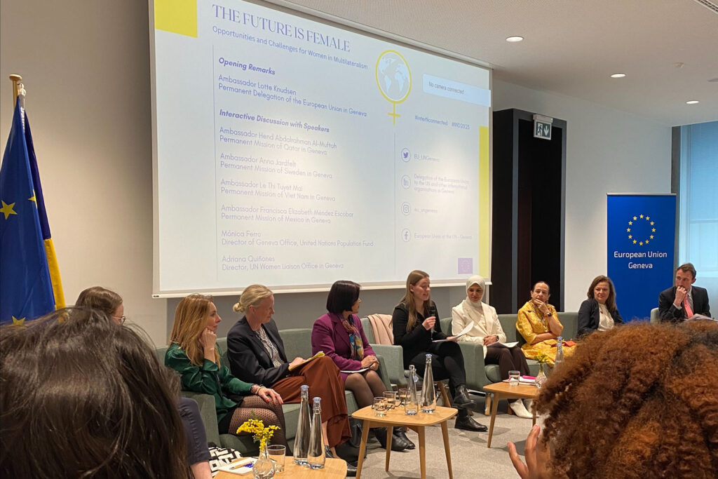As a young woman here in Geneva, gender and gender diversity have been on my mind. I have been thinking about how gender and gender diversity impacts multilateralism and global governance and what it would mean and look like to have gender equality in Geneva, for instance. During my time working with the health team at the Mission, I did not notice gender during WHO meetings. But, once I shifted and was working on humanitarian affairs, the gender divide became more stark. For instance, I found myself in a meeting for the International Syrian Support Group and the attendees were mostly men. I had learned about the gender divide among sectors during my studies but to see and experience it at the UN in Geneva was interesting. I remember thinking to myself, I wonder if the outcome of these meetings would be different if more women and gender diverse people were included and represented. I have heard the repeated message of the importance of women in peace and security, since studies show that when women are involved in peace-making, the outcomes are improved.