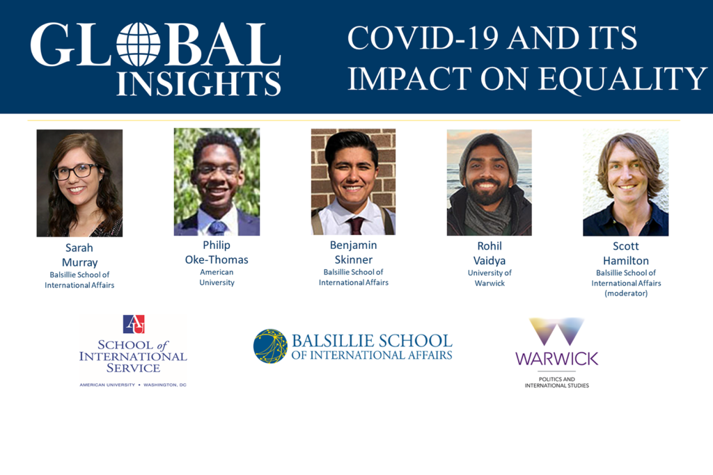 The COVID-19 pandemic has affected different members of society in different ways, aggravating pre-existing cleavages within countries whether along lines of class, race, gender, sexual orientation and gender identity, and/or ability. But it has also created space for confronting the structural barriers standing in the way of people’s full participation in their communities. In this month’s episode of Global Insights, graduate students will discuss not only the ways in which the pandemic has exacerbated inequality, but the opportunities for creating a more equal, inclusive and accessible world.